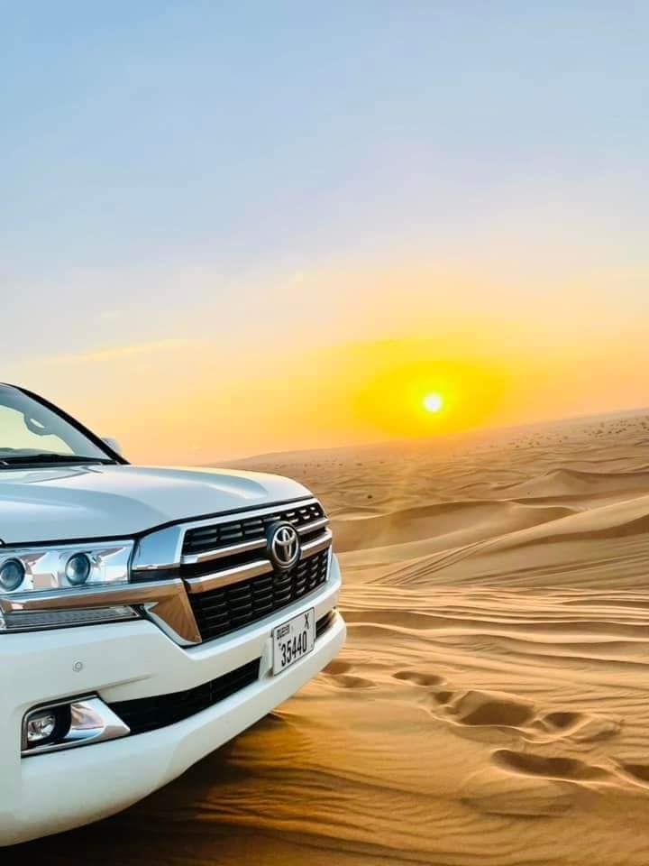 Thrilling Dune Bashing on Sand Dunes in the desert on 4×4 Land Cruiser, going high up on the Sand Hills and afterward sliding back on the ground.